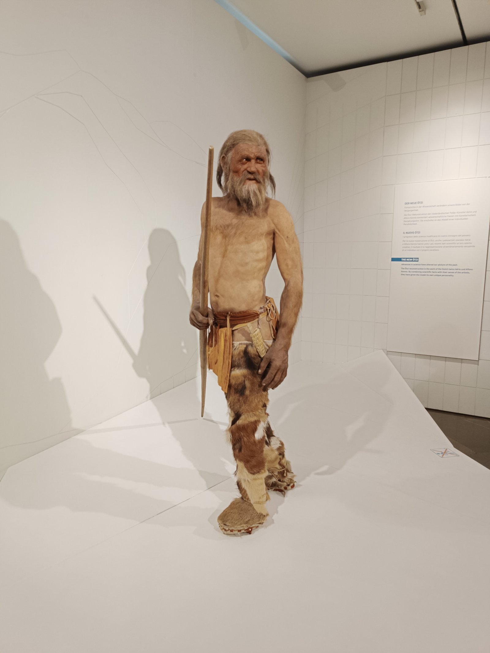 1991년 이탈리아 알프스에서 발견된 약 5,300년 전 미라 외찌(Ötzi)의 복원. 그가 차고 있던 가죽 주머니에서 부싯깃 버섯(Fomes fomentarius)으로 가공한 ‘아마두’와 황철석 조각이 함께 나왔다 — 스타 카 사람들이 쓰던 불씨 기술이 5천 년을 건너 그대로 이어지고 있었다. ⓒ Mannivu / Wikimedia Commons (CC BY-SA 4.0)